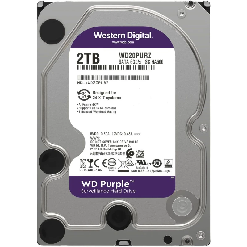 برای استفاده از سیستمهای امنیتی،به هاردهای اینترنال با سرعت و ظرفیت زیاد نیاز است تا دادهها را بدن هیچ خللی در خود ذخیره کند.هارددیسک اینترنال »WD20PURZ» از تولیدات شرکت «وسترن دیجیتال» (Western Digital) است. این مدل در خانوادهی بنفش (Purple) سازنده جای میگیرد و برای استفاده از سیستمهای حفاظتی ساخته شده است. در سیستمهای حفاظتی و DVRها به هارددیسکی با توانایی ذخیرهی پیوستهی دادهها نیاز است و باید بتواند هر روز، حجم زیادی از دادهها را ذخیره کند. در WD20PURZ سازوکاری وجود دارد که امکان نوشتهشدن بیوقفهی اطلاعات را فراهم میکند. این مدل میتواند خروجی 64 دوربین نظارتی را به صورت همزمان روی خود ضبط کند که استفاده از آن را در سیستمهای مداربسته ایدئال میکند. ظرفیت هارددیسک 2 ترابایت و سرعت چرخش پلاترهای آن 5400 دور بر دقیقه است. 64 مگابایت حافظهی کش برای ذخیرهسازی در نظر گرفته شده است تا احتمال ازبینرفتن دادهها هنگام ذخیرهشدن به صفر برسد. به دلیل کیفیت ساخت خوب هارددیسک WD20PURZ، سازنده اعلام کرده است که میتوان سالانه تا 180 ترابایت داده را بدون هیچ مشکلی روی آن نوشت. WD20PURZ در فرم فاکتور 3.5 اینچی ساخته شده است و برای نصب، به چنین فضایی نیاز دارد. اینترفیس ذخیرهسازی، رابط آشنای SATA 3.0 است و میتواند در بهترین حالت خود، به سرعت انتقال 6 گیگابیت بر ثانیه برسد.